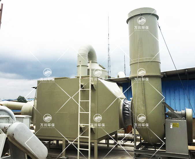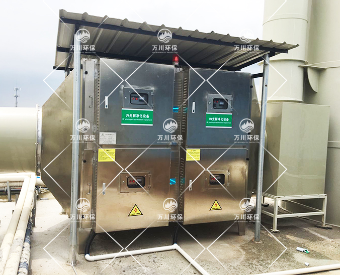 由于廢氣中含有一定的顆粒物,因此廢氣首先進(jìn)到噴淋塔在進(jìn)一步除去顆粒物和水溶性物質(zhì),而后進(jìn)入到除霧器,過濾未完全凈化水分,而后進(jìn)入UV光氧凈化器,最后再進(jìn)行活性炭吸附裝置,該法具有處理效果高,運(yùn)行穩(wěn)定優(yōu)點(diǎn)。
