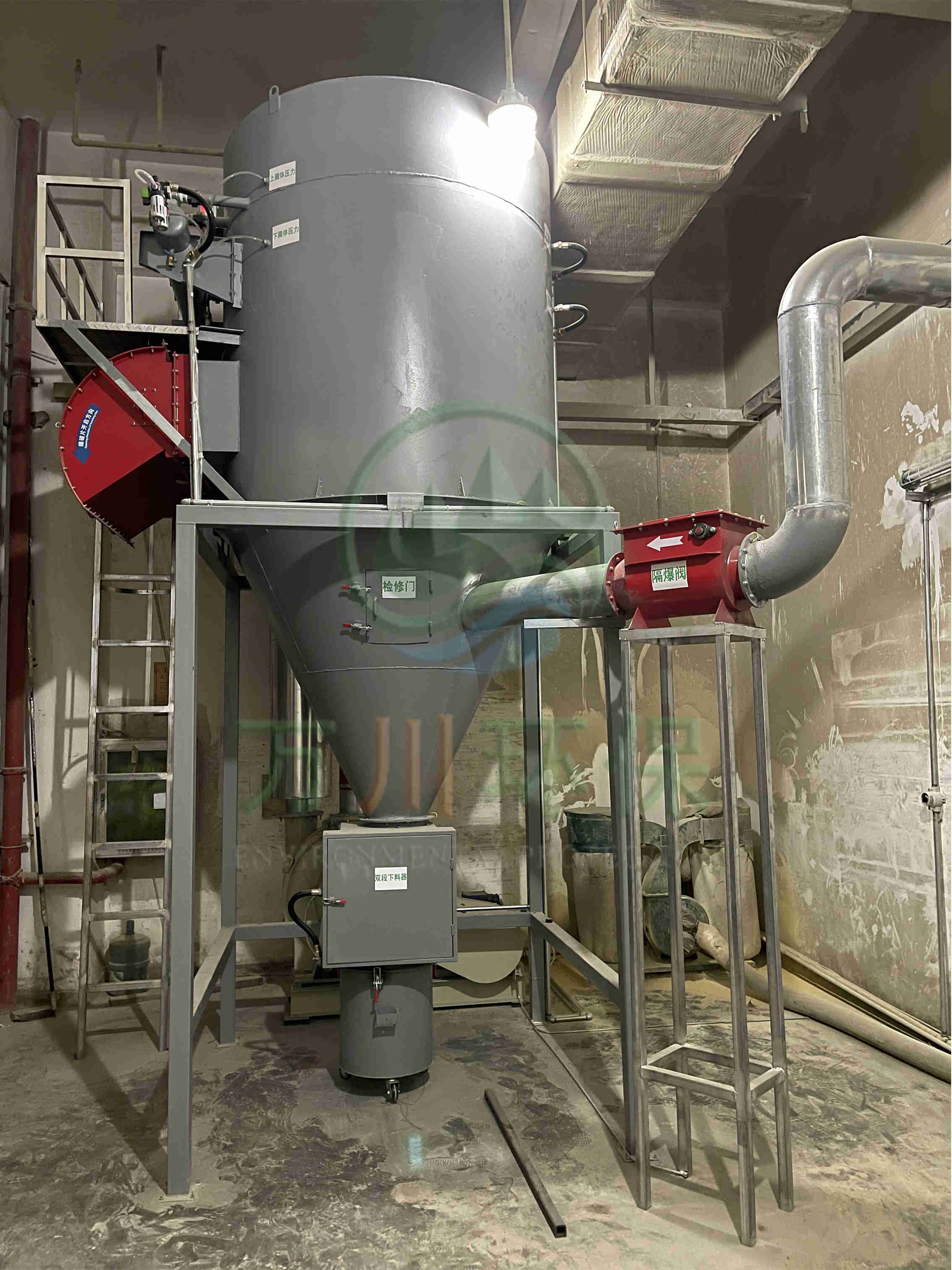 萬川配套一套脈沖布袋除塵器+防靜電布袋+防爆除塵風機+防爆卸料器+無焰泄爆器+隔爆+自動化電控柜系統(tǒng)。