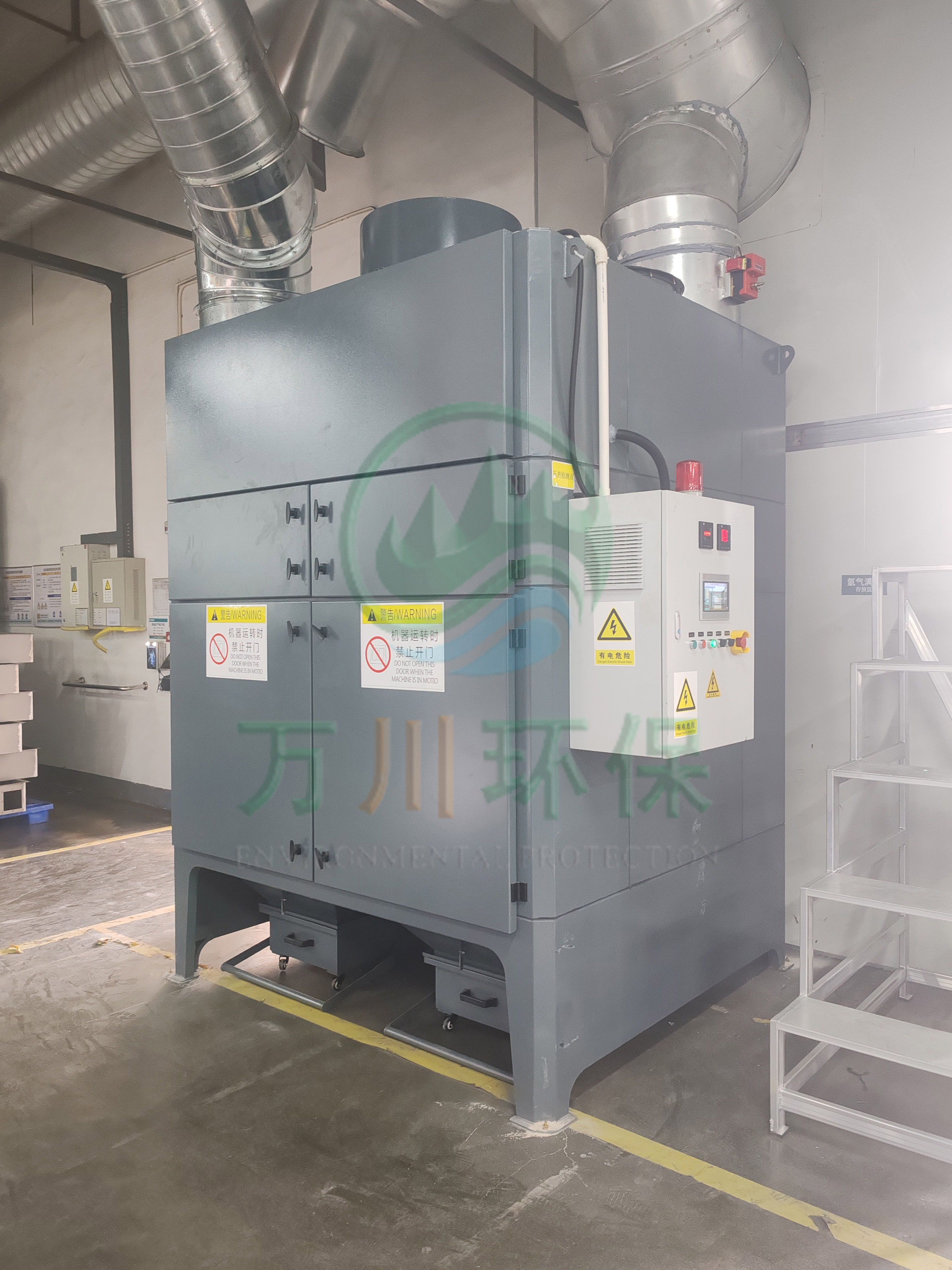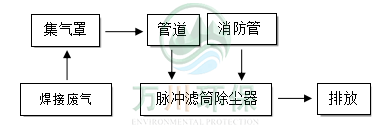 工程師根據(jù)現(xiàn)場(chǎng)焊接煙塵性質(zhì)、粒徑、現(xiàn)場(chǎng)工況等因素考量,故采用脈沖濾筒除塵器作為處理設(shè)備