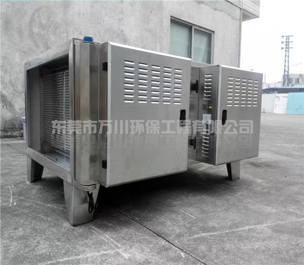 飯?zhí)糜蜔熅哂幸欢ǖ亩拘?,溫度高、有腐蝕性,長期吸入對人體造成嚴(yán)重的傷害,而且還會對周邊環(huán)境造成污染,要經(jīng)過處理后才可以排放。鑒于對這類污染物的特點(diǎn),我們采用了等離子凈化器去處理,設(shè)備使用耐腐蝕、耐高溫的不銹鋼作為設(shè)備的材料,可以延長設(shè)備的壽命。通風(fēng)管也是采用了耐腐蝕耐高溫的材料制作而成的,通風(fēng)管道中間安裝過濾網(wǎng),可以在油煙進(jìn)去的時候過大顆粒的污染物。